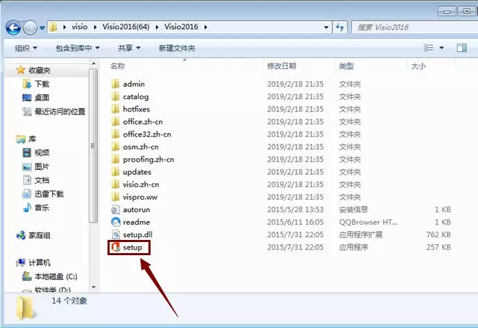 2. 打开“Visio2016(64)”文件夹,双击“set up”。