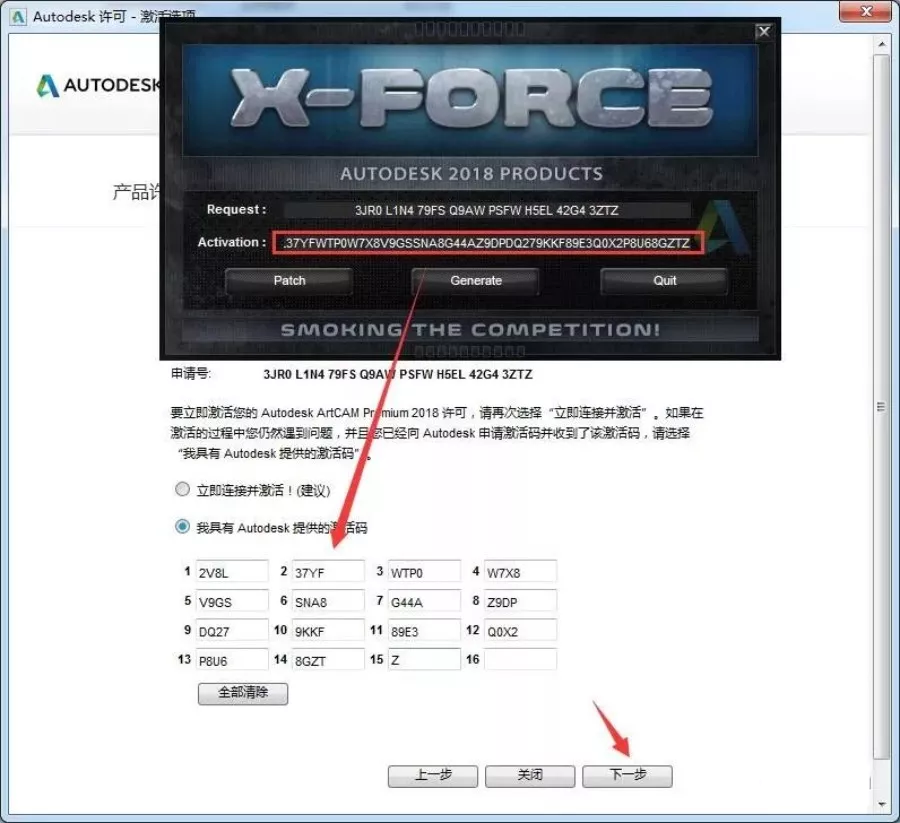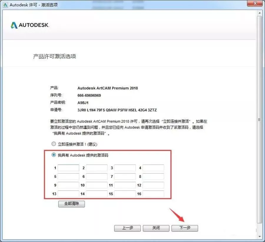 16.将得到的激活码复制到软件窗口中,点击下一步