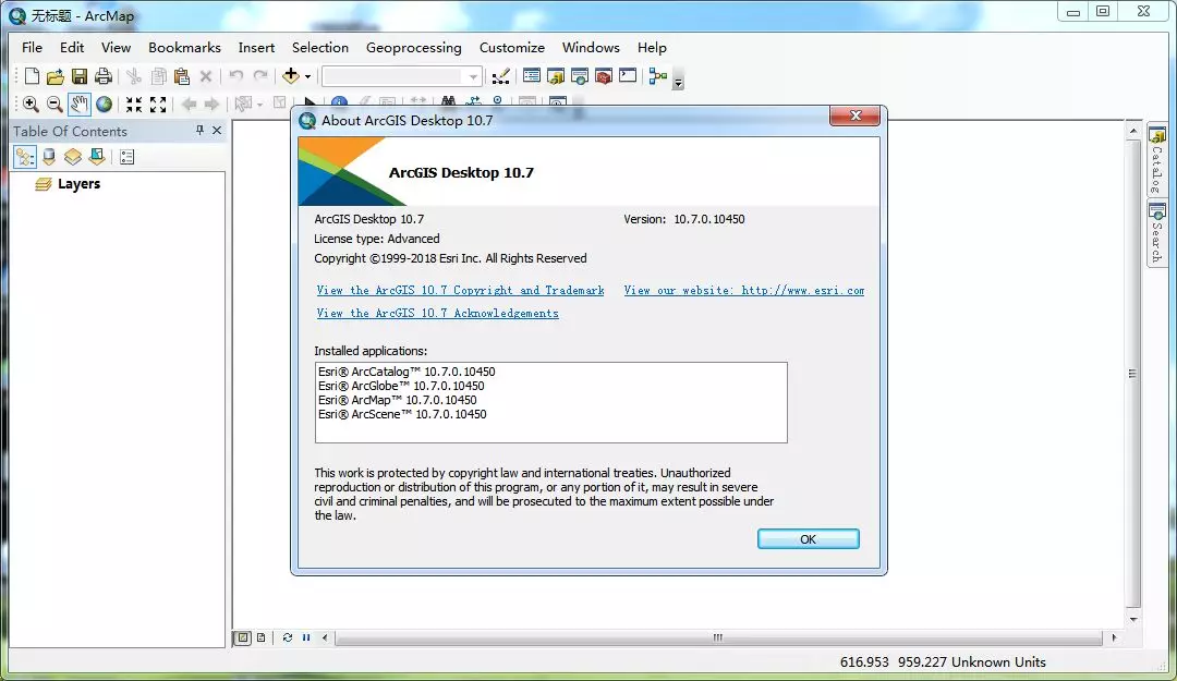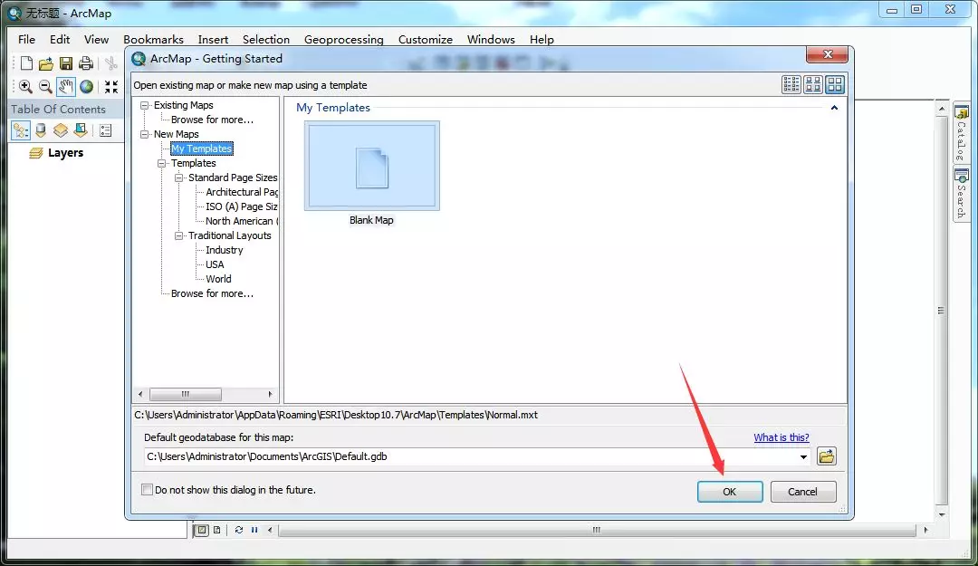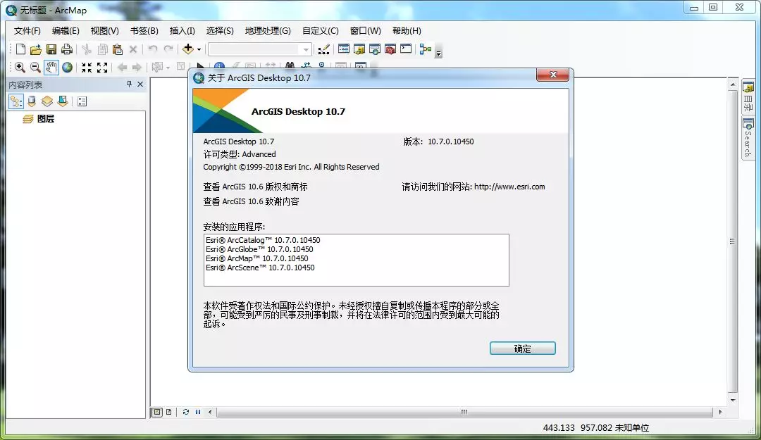 3、这个时候我们再次打开ArcGIS Desktop 10.7软件,就发现程序已经汉化成功了。放心使用吧。