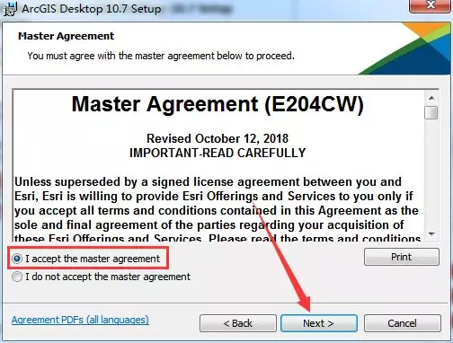 3、选中【I accept the master agreement】我接受许可协议,并继续【Next】下一步
